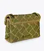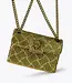 De Mini Fabric Kensington is gemaakt van een geel iriserende stof met kristallen versieringen in het Kensington-quiltpatroon. De groene adelaarskop is voorzien van kristallen en groene kristallen ogen op de voorflap.